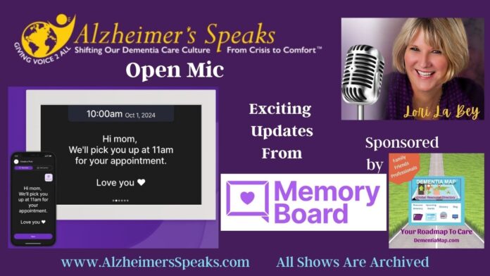 Today, Lori La Bey, the host of Alzheimer’s Speaks, talks with Tyler Zanini, Co-founder at MemoryBoard, about their exciting news. Memory Board just launched in June of 2025. Join us to learn more about the features and how Memory Board can ease your caring journey while increasing connection, communication, and comfort for both your loved one or client, as well as family members and staff. You can also take advantage of their fall special discount of 10% off by using the code FALL10 at checkout.