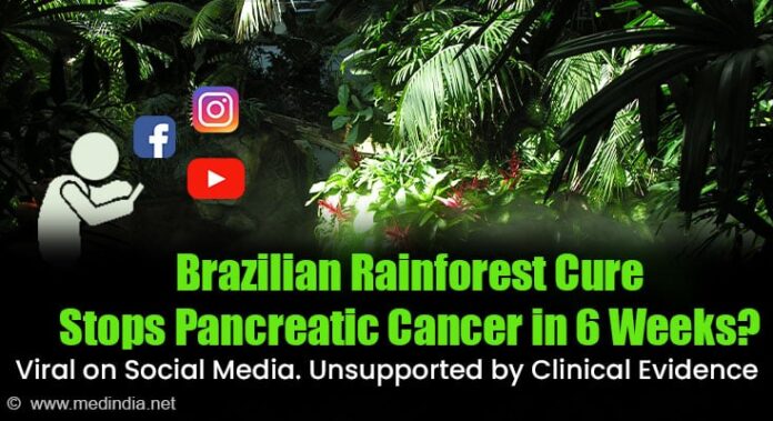 A widely circulated social media post claims that a Brazilian rainforest compound can arrest pancreatic cancer growth in about 90% of the patients within 6 weeks of time, with 34% experiencing significant tumour shrinkage—presenting the finding as a ready-to-use medical breakthrough!