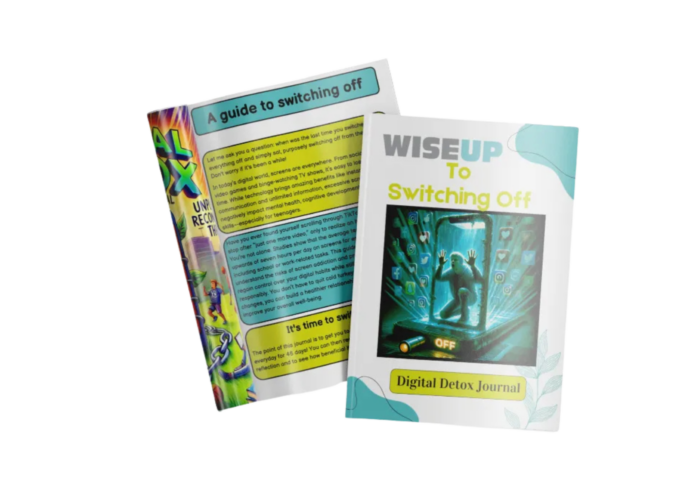 The WiseUp to Switching Off digital journal combines evidence-based education about technology and the brain, practical habit-building tools, daily reflection prompts and offline challenges designed to improve focus sleep and connection with others. It is intended for use both at home and in educational settings complementing Personal Social Health and Economic (PSHE) learning.